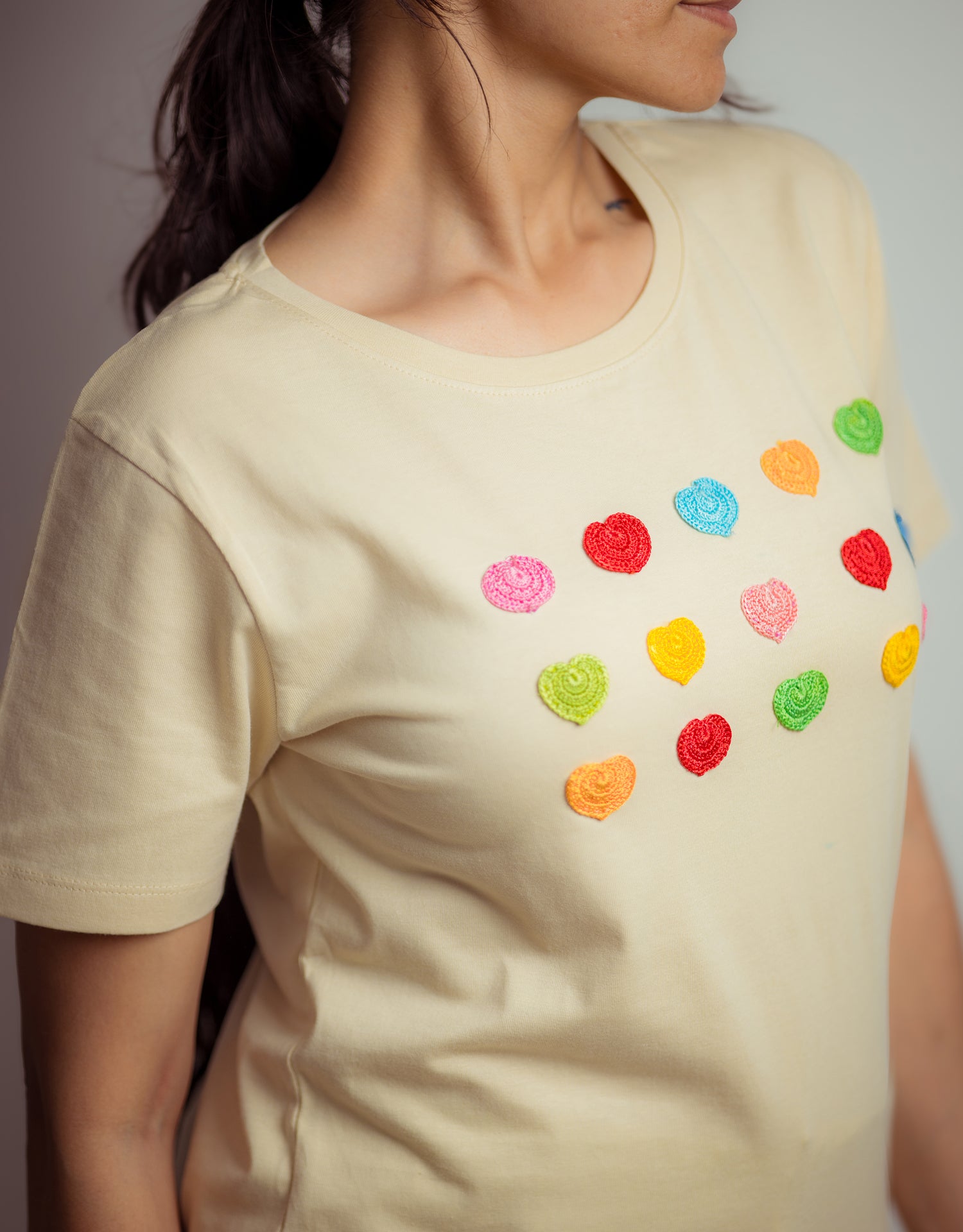 An easy essential with an artisanal twist. Crafted in pure cotton, this T-shirt features intricate crochet detailing that brings a handmade charm to a modern silhouette. Comfortable, versatile, and beautifully textured, it’s a piece that bridges the gap between casual and considered effortless by design, special in the details.
