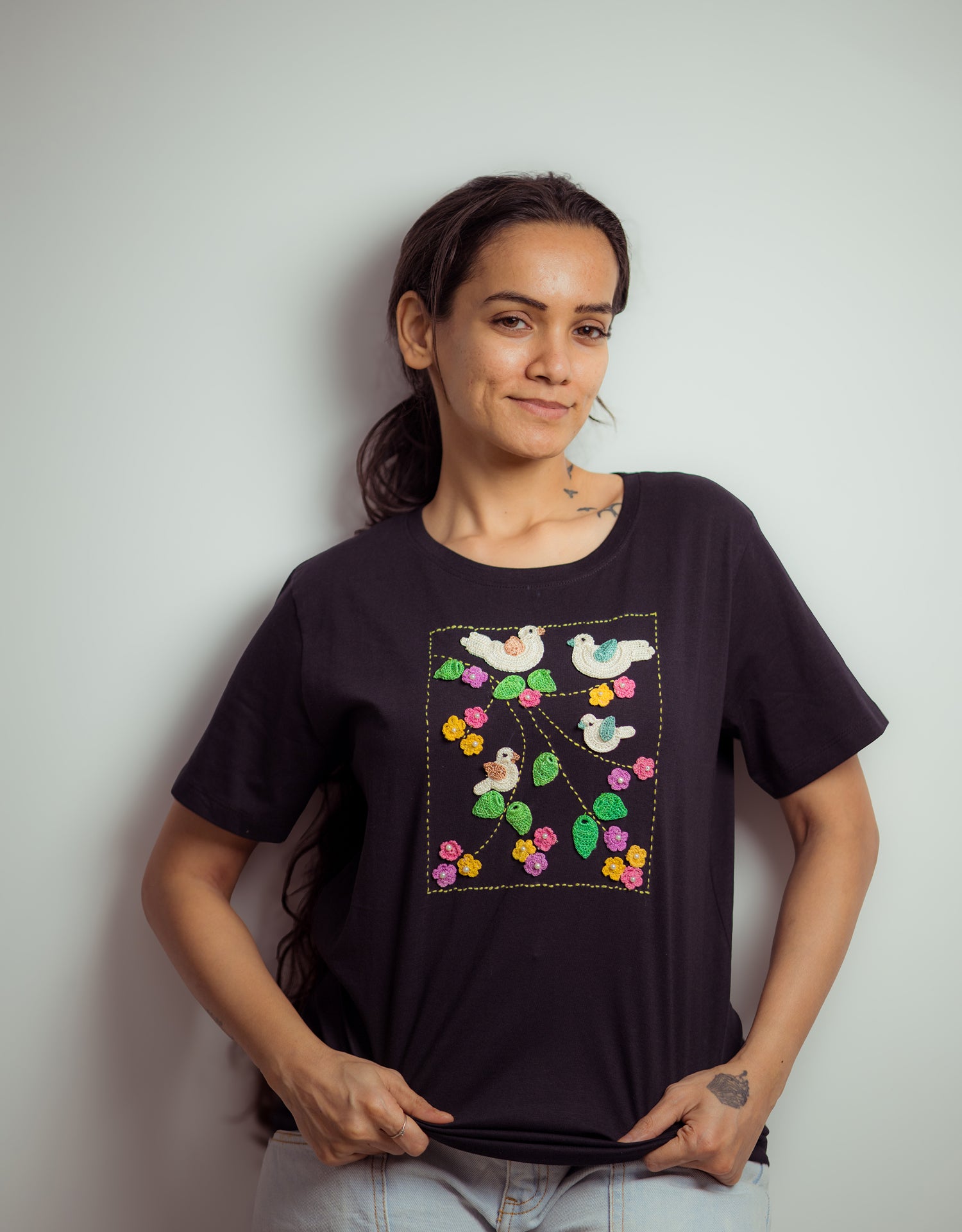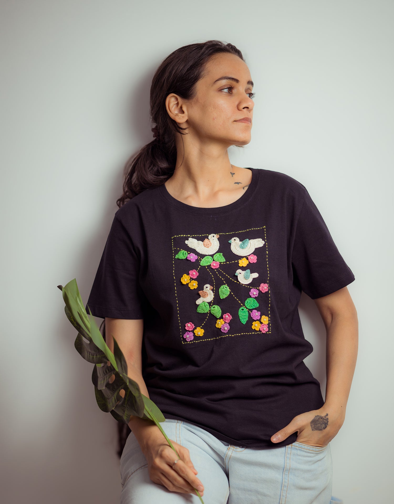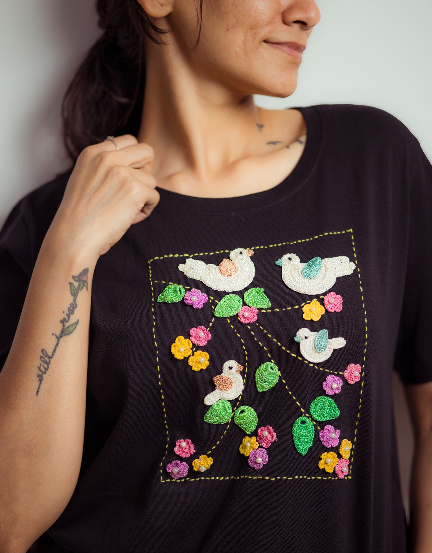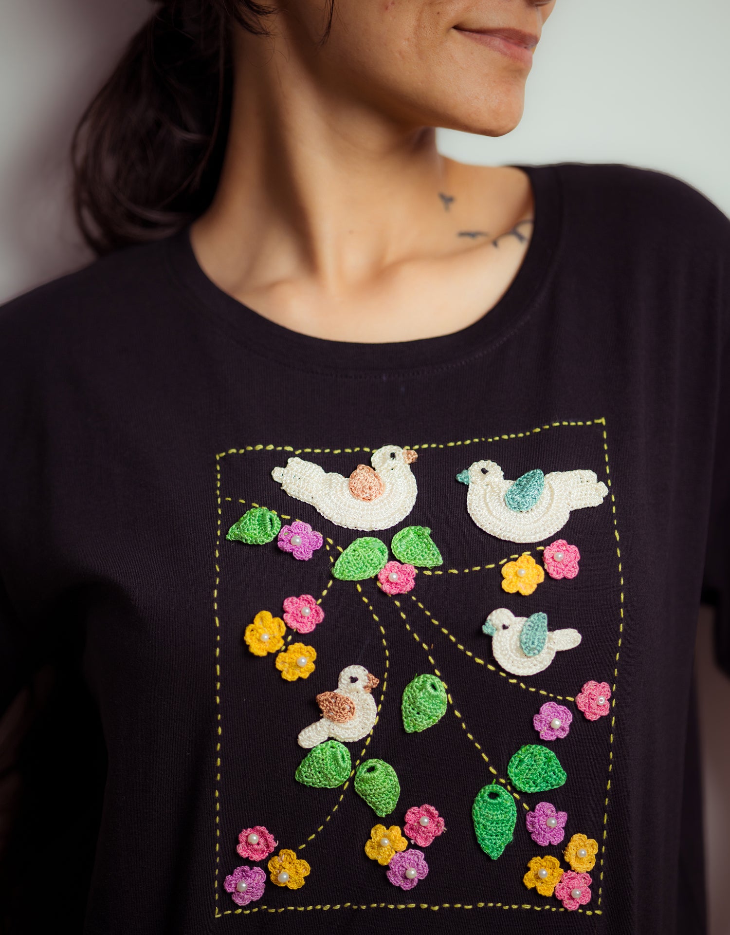 An easy essential with an artisanal twist. Crafted in pure cotton, this T-shirt features intricate crochet detailing that brings a handmade charm to a modern silhouette. Comfortable, versatile, and beautifully textured, it’s a piece that bridges the gap between casual and considered effortless by design, special in the details.