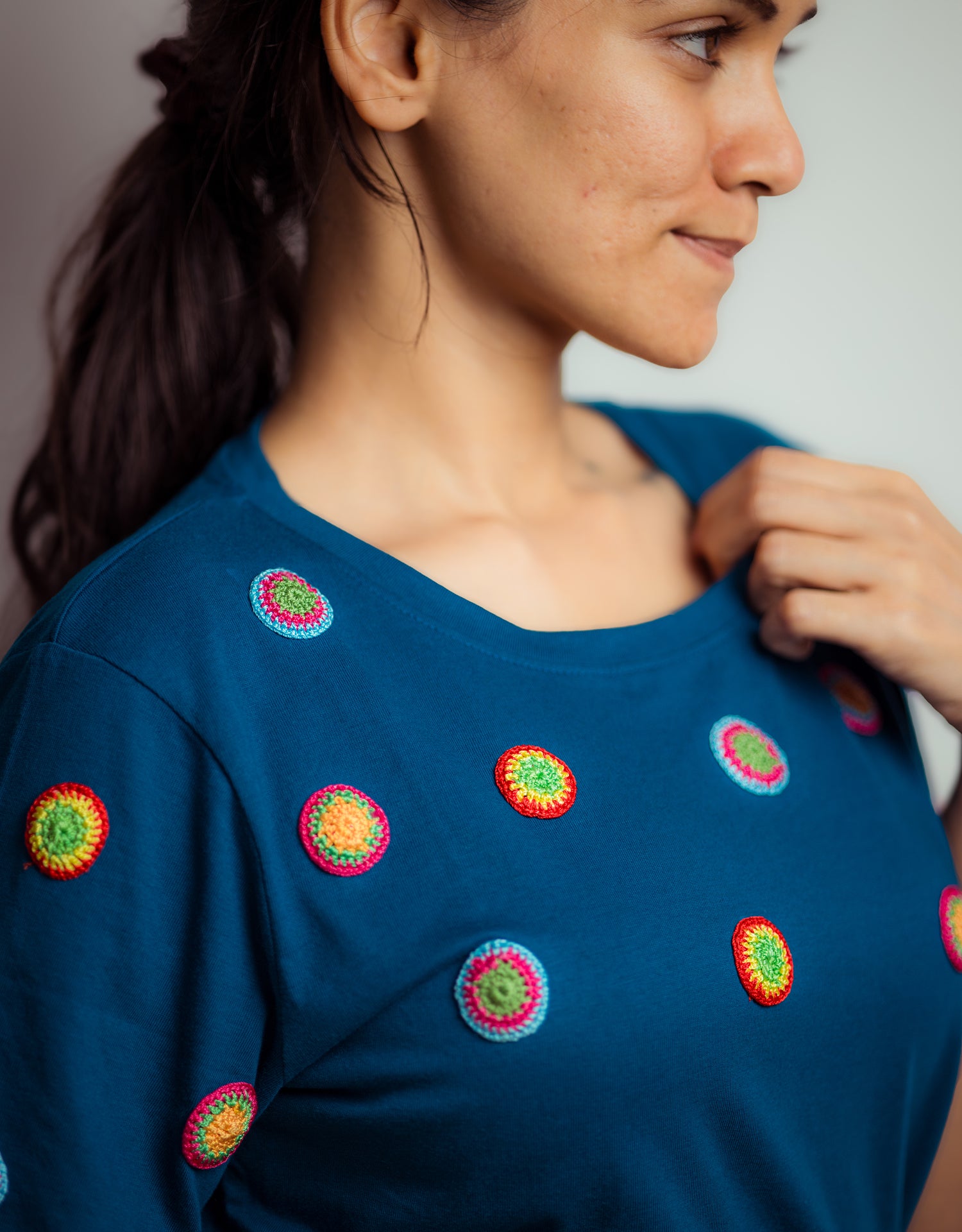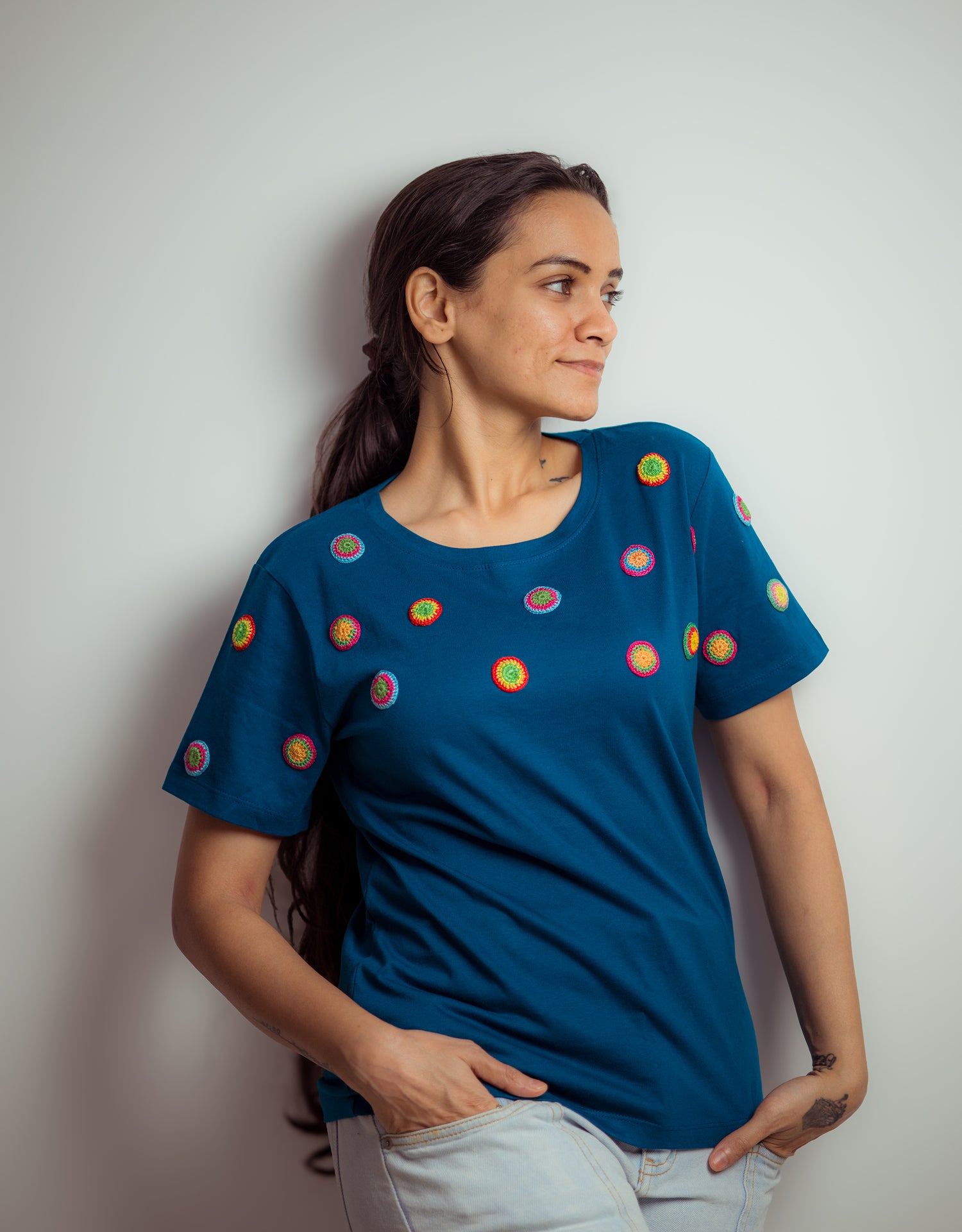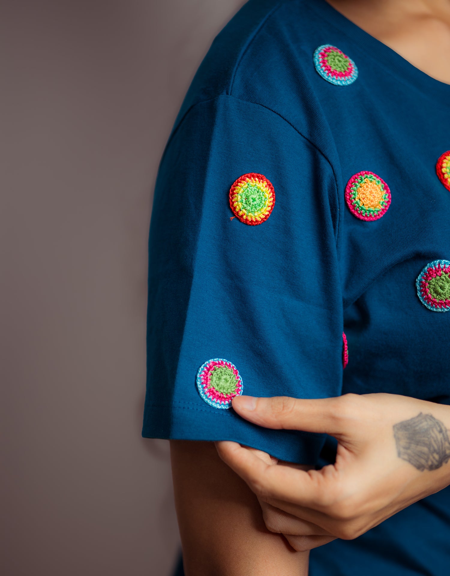An easy essential with an artisanal twist. Crafted in pure cotton, this T-shirt features intricate crochet detailing that brings a handmade charm to a modern silhouette. Comfortable, versatile, and beautifully textured, it’s a piece that bridges the gap between casual and considered effortless by design, special in the details.