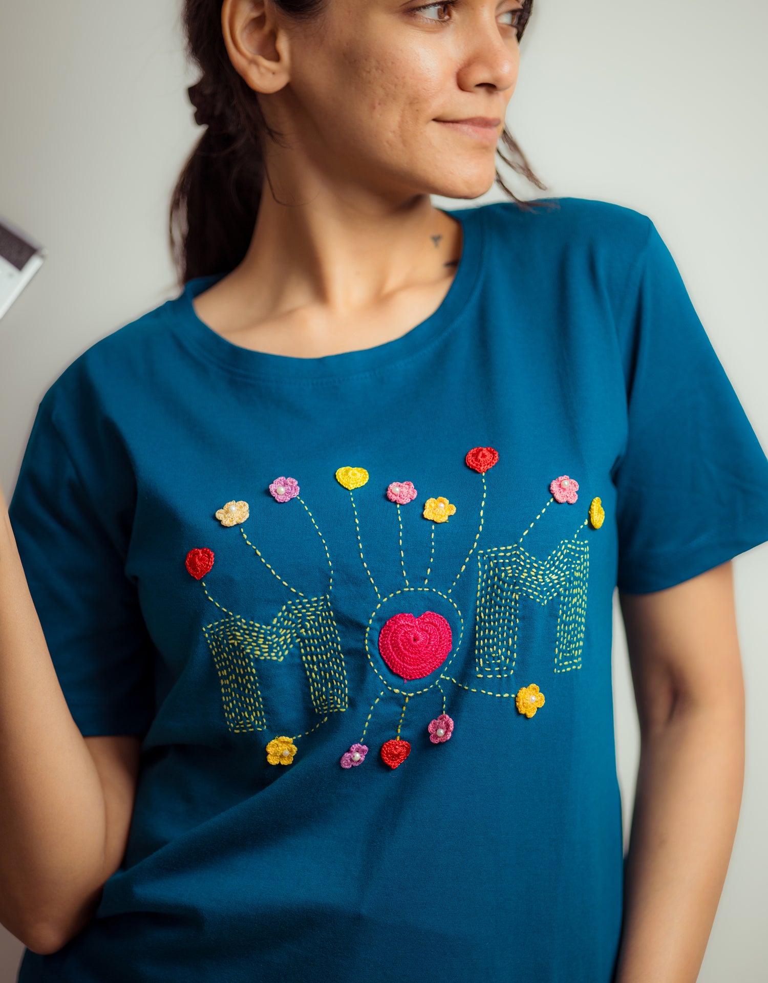 An easy essential with an artisanal twist. Crafted in pure cotton, this T-shirt features intricate crochet detailing that brings a handmade charm to a modern silhouette. Comfortable, versatile, and beautifully textured, it’s a piece that bridges the gap between casual and considered effortless by design, special in the details.