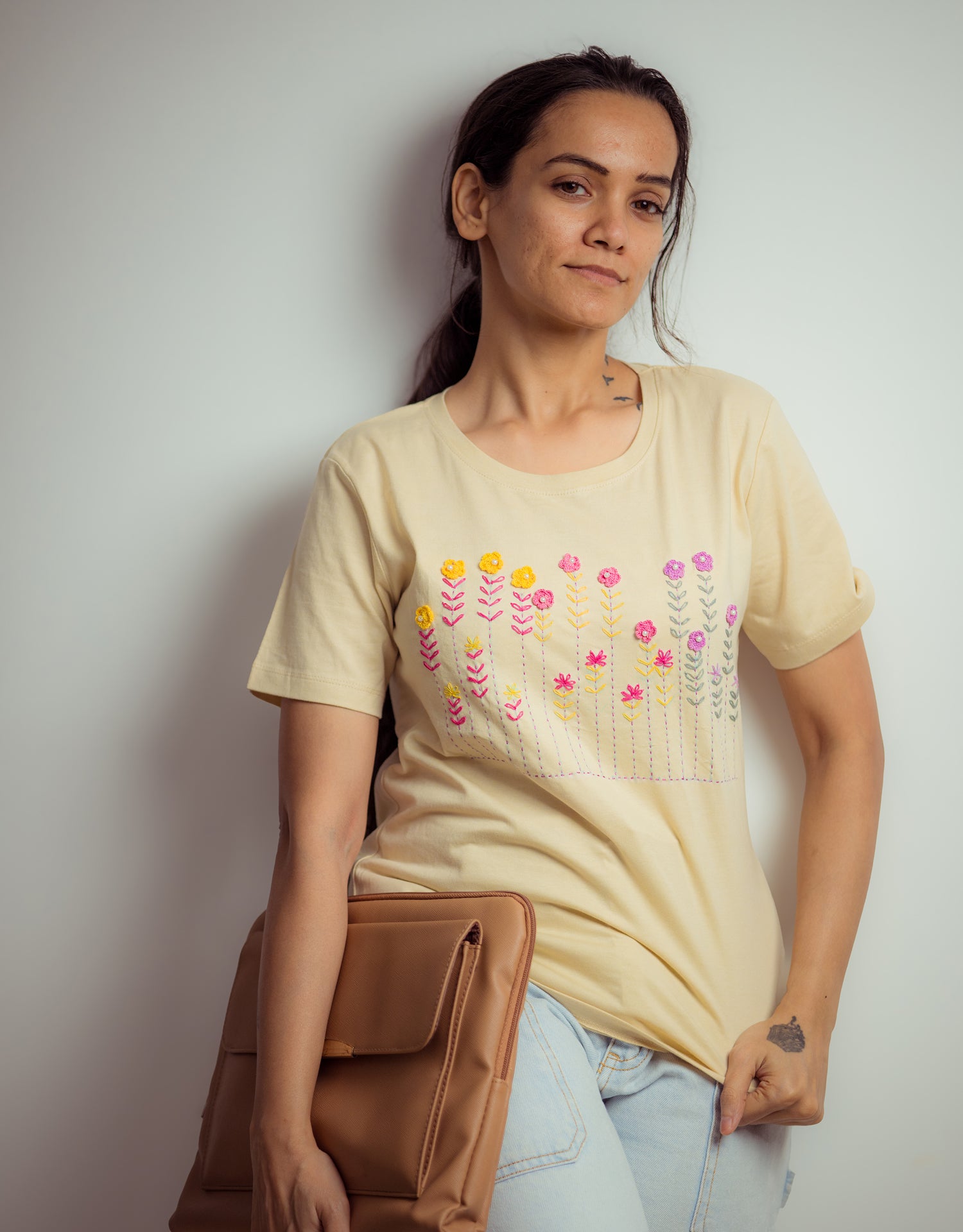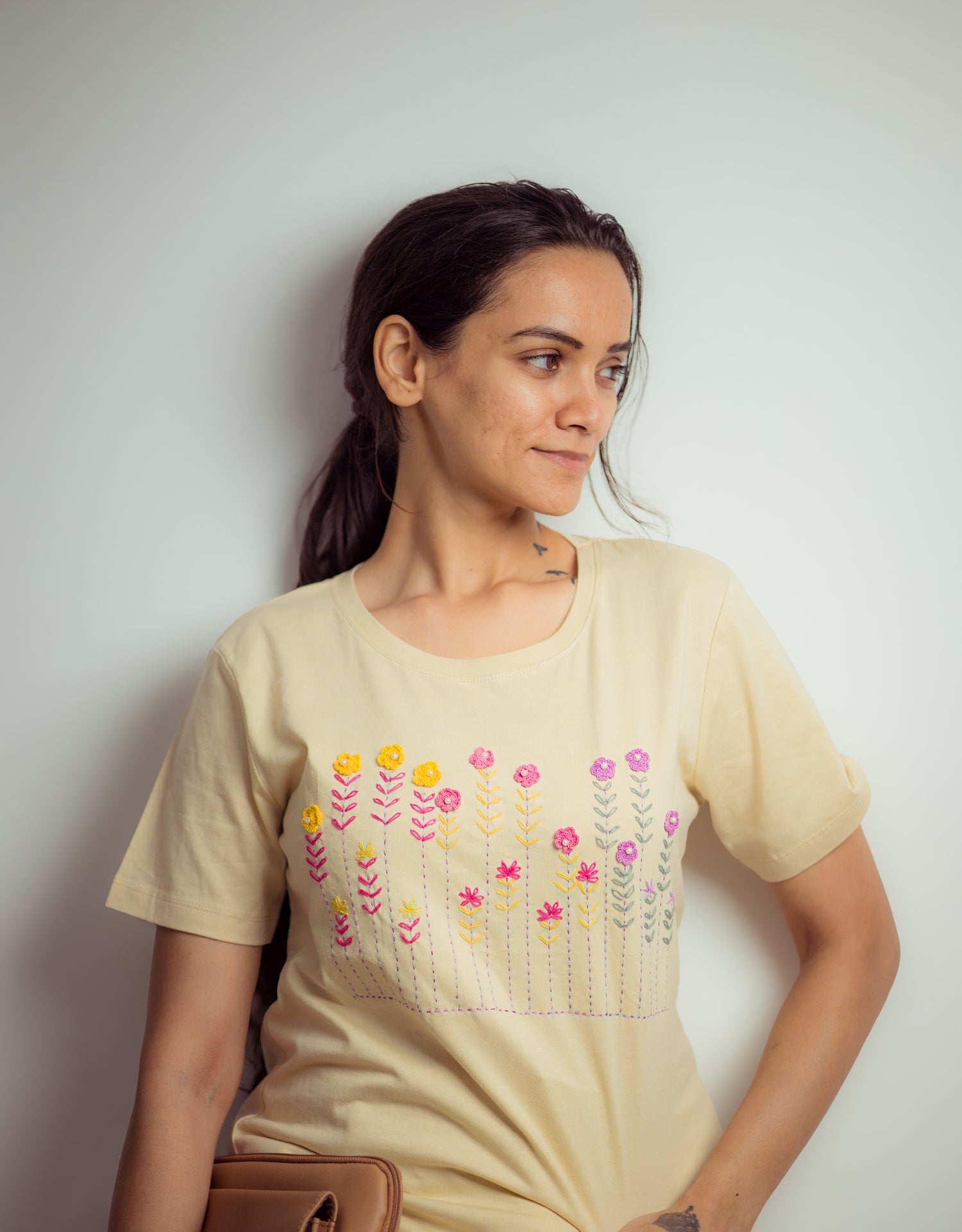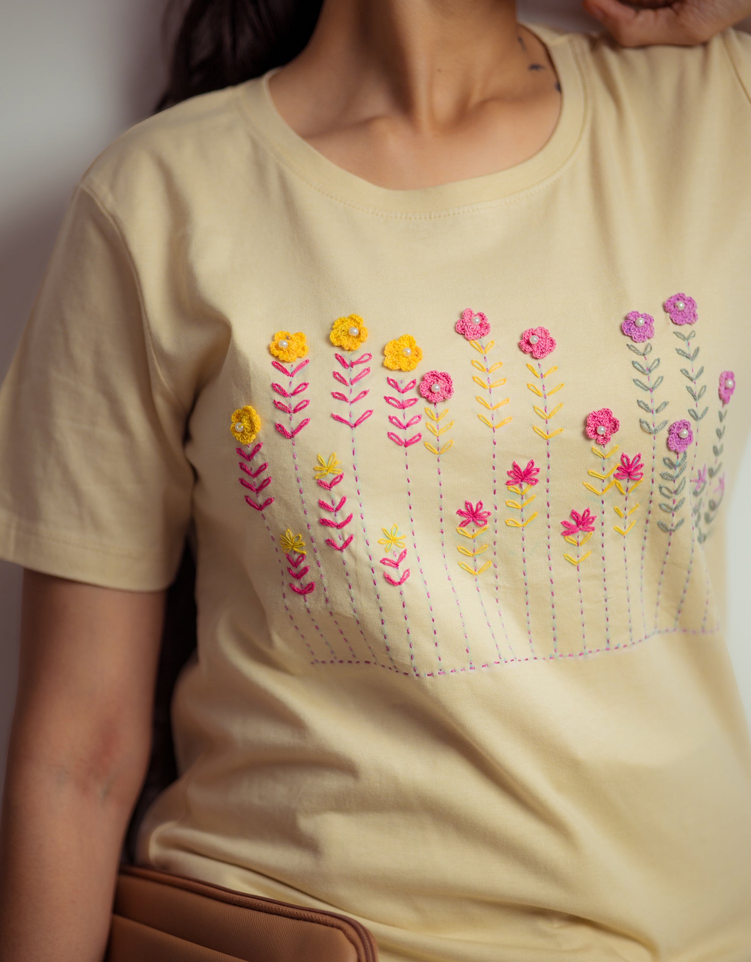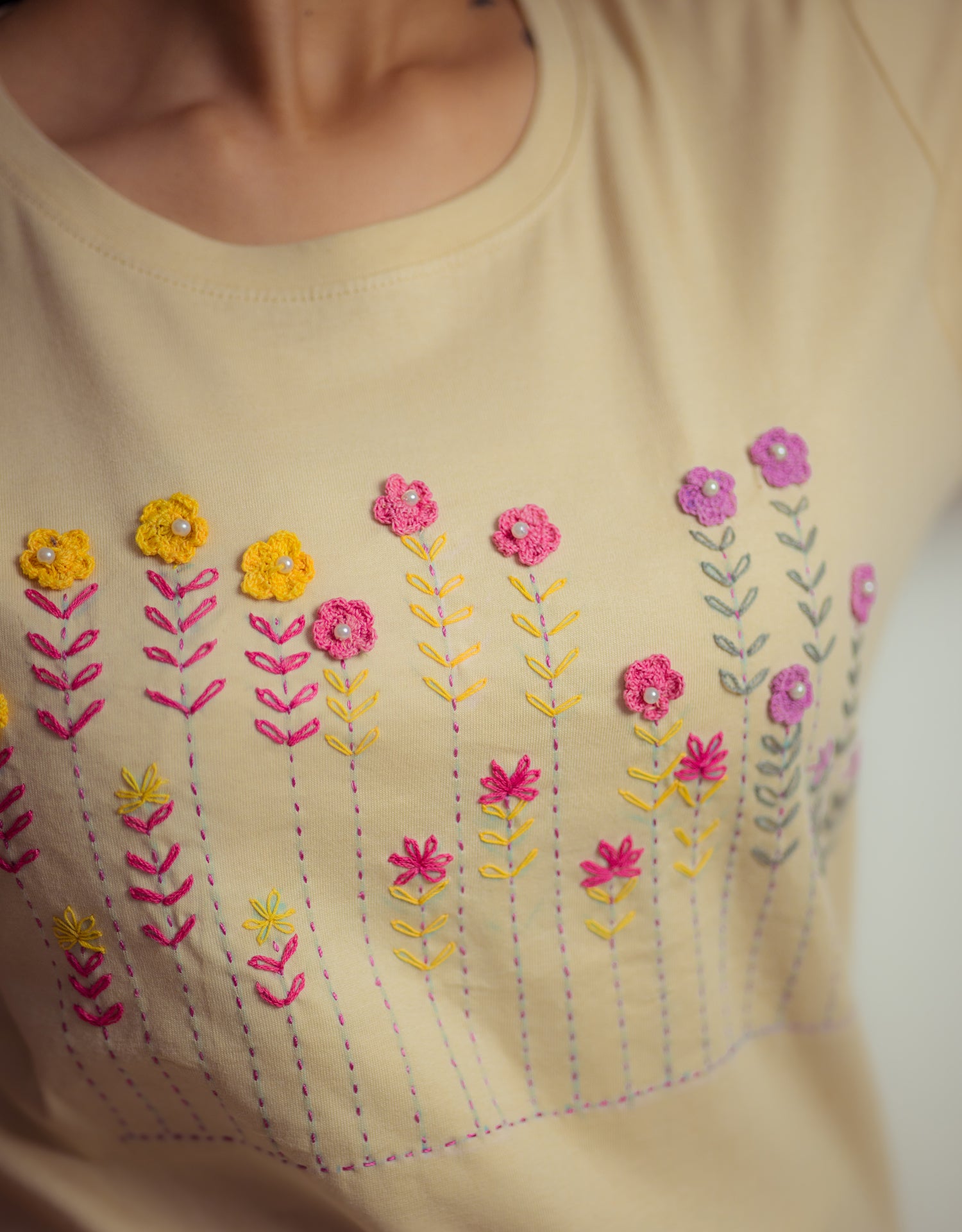 An easy essential with an artisanal twist. Crafted in pure cotton, this T-shirt features intricate crochet detailing that brings a handmade charm to a modern silhouette. Comfortable, versatile, and beautifully textured, it’s a piece that bridges the gap between casual and considered effortless by design, special in the details.
