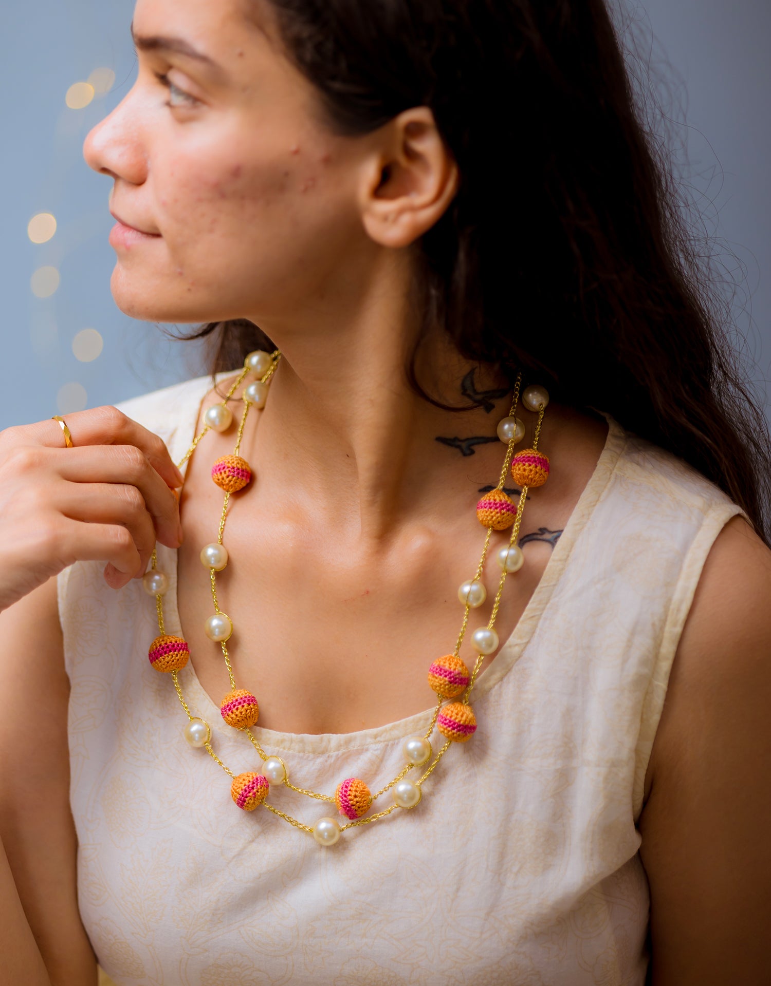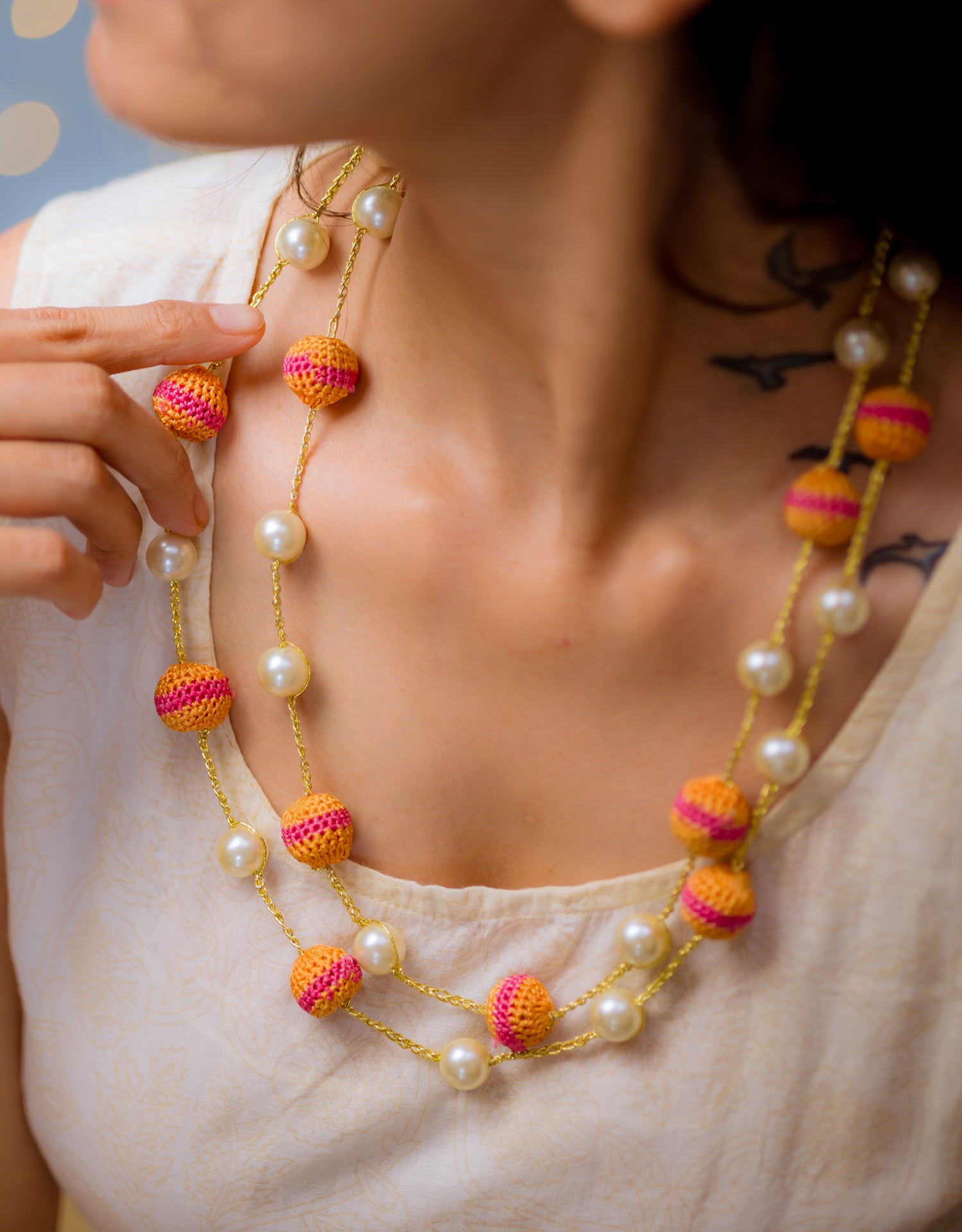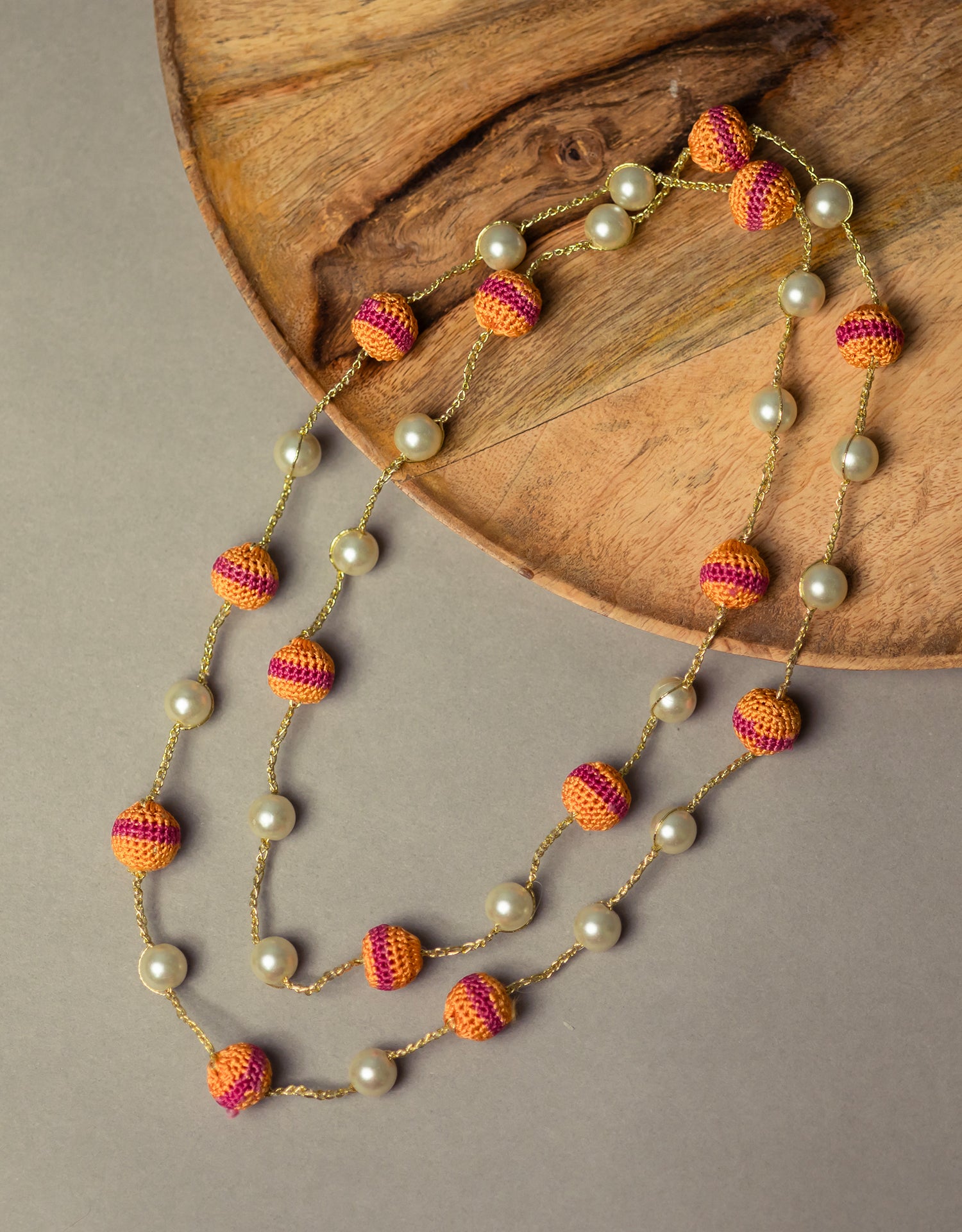 Pearl Necklace - Orange & Pink