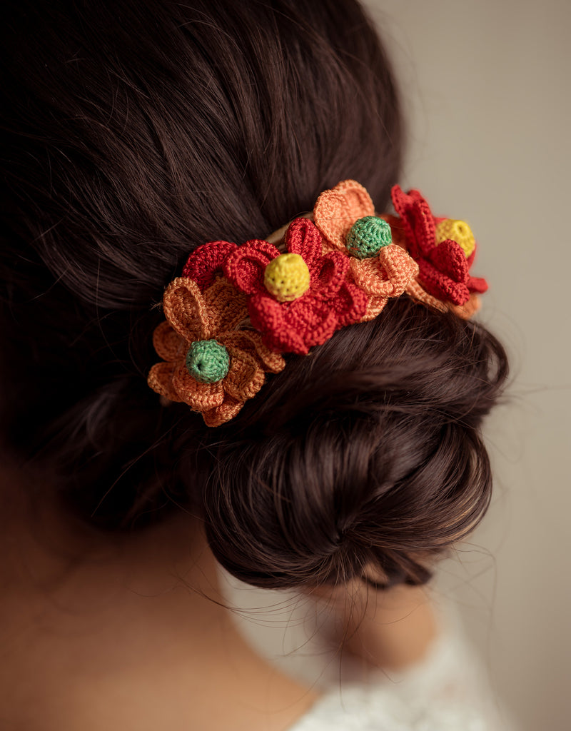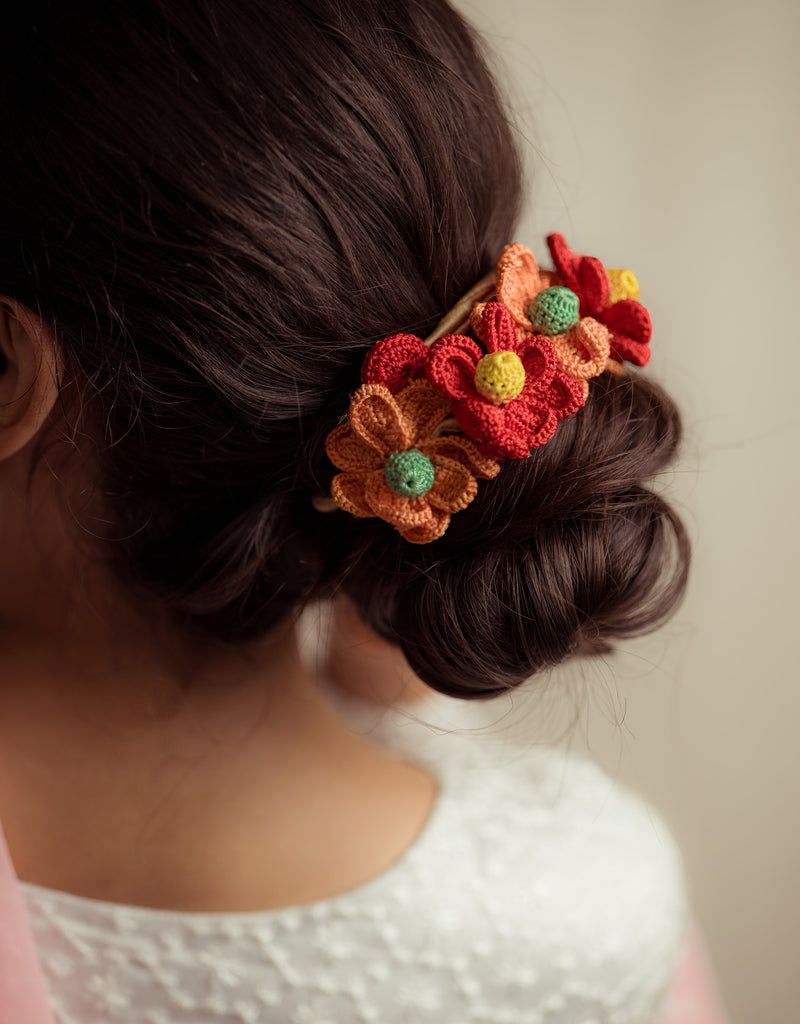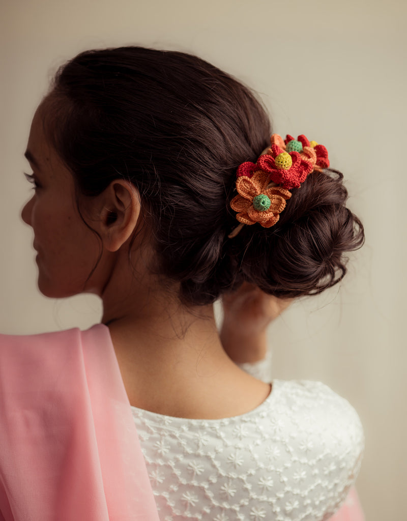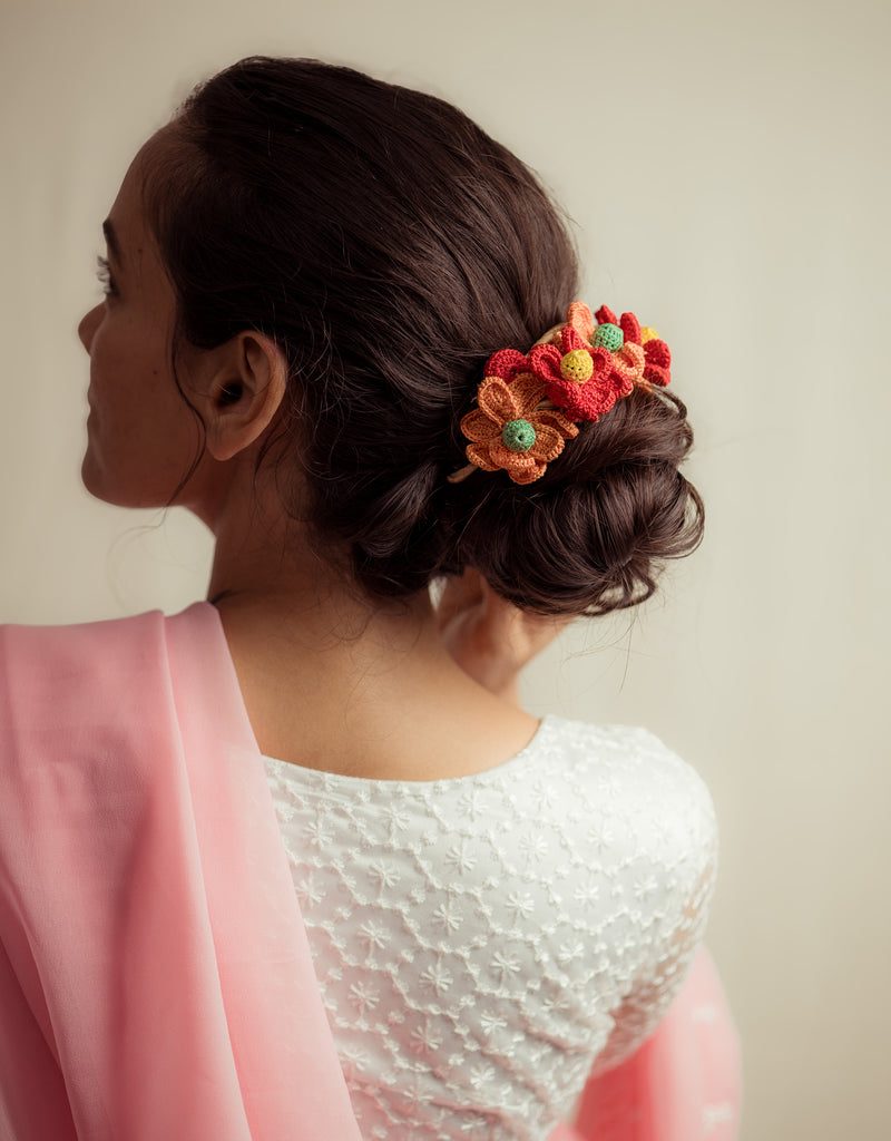 There’s a quiet romance in the way flowers have always found their place in our lives, tucked into braids, worn at celebrations, offered in prayer. Our gajra is a tribute to that enduring tradition, inspired by the floral adornments cherished by women. Every flower is shaped and strung by hand, crafted with the same care that goes into age-old rituals of beauty and belonging. You can wear it in your hair, wrap it around your neck or wrist, or drape it gently on a bun however, you choose, it carries with it a whisper of heritage, softness, and everyday poetry.