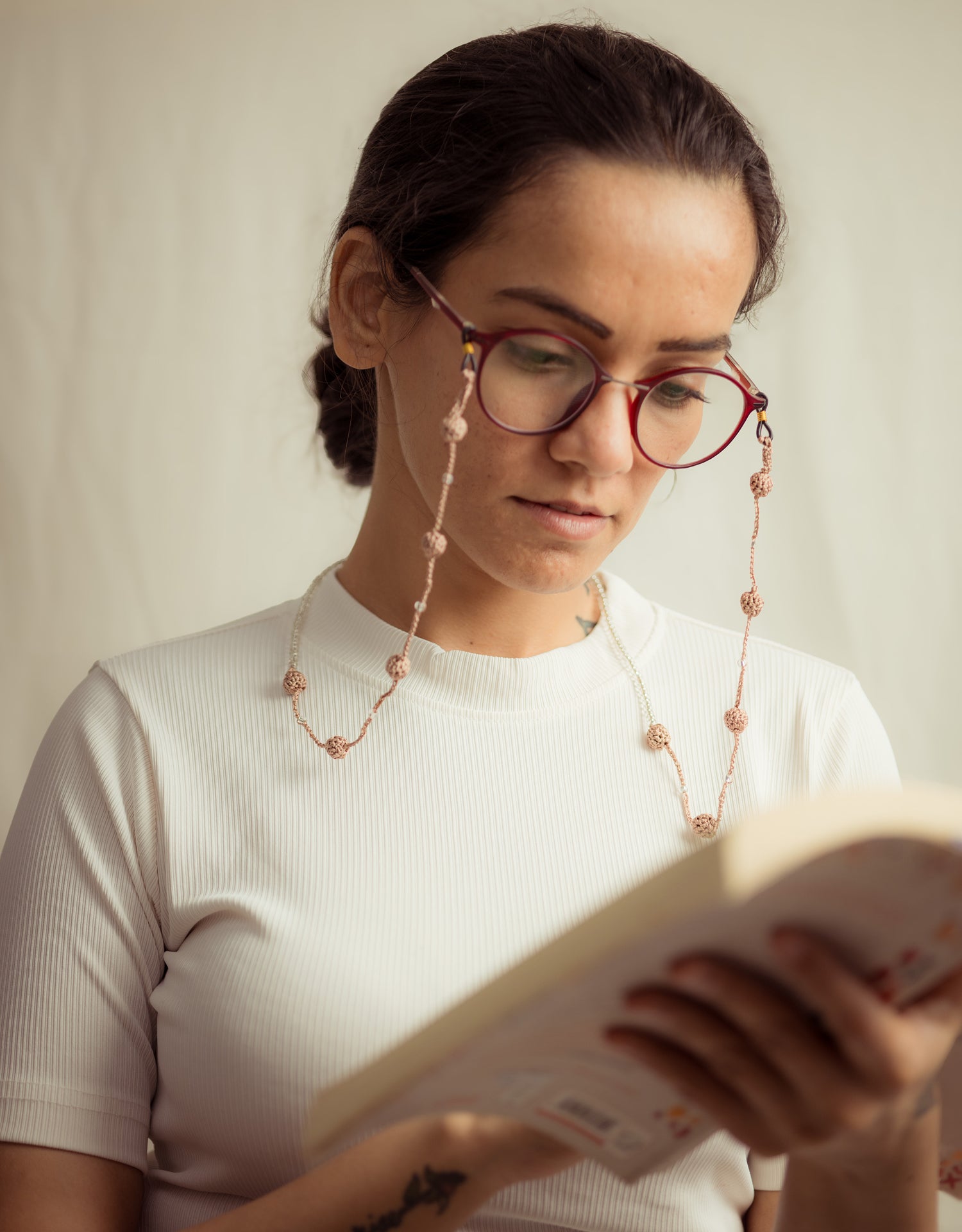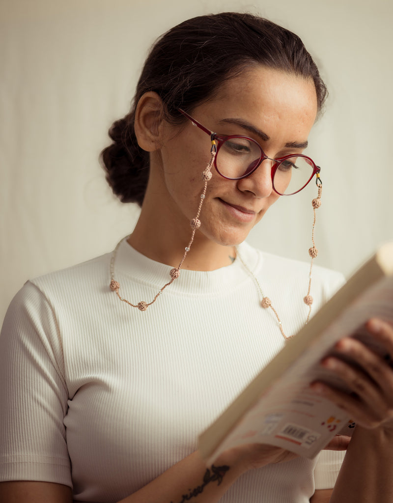 - Material: Spectacle Loop, Glass Beads, Viscose Thread, Wooden Beads