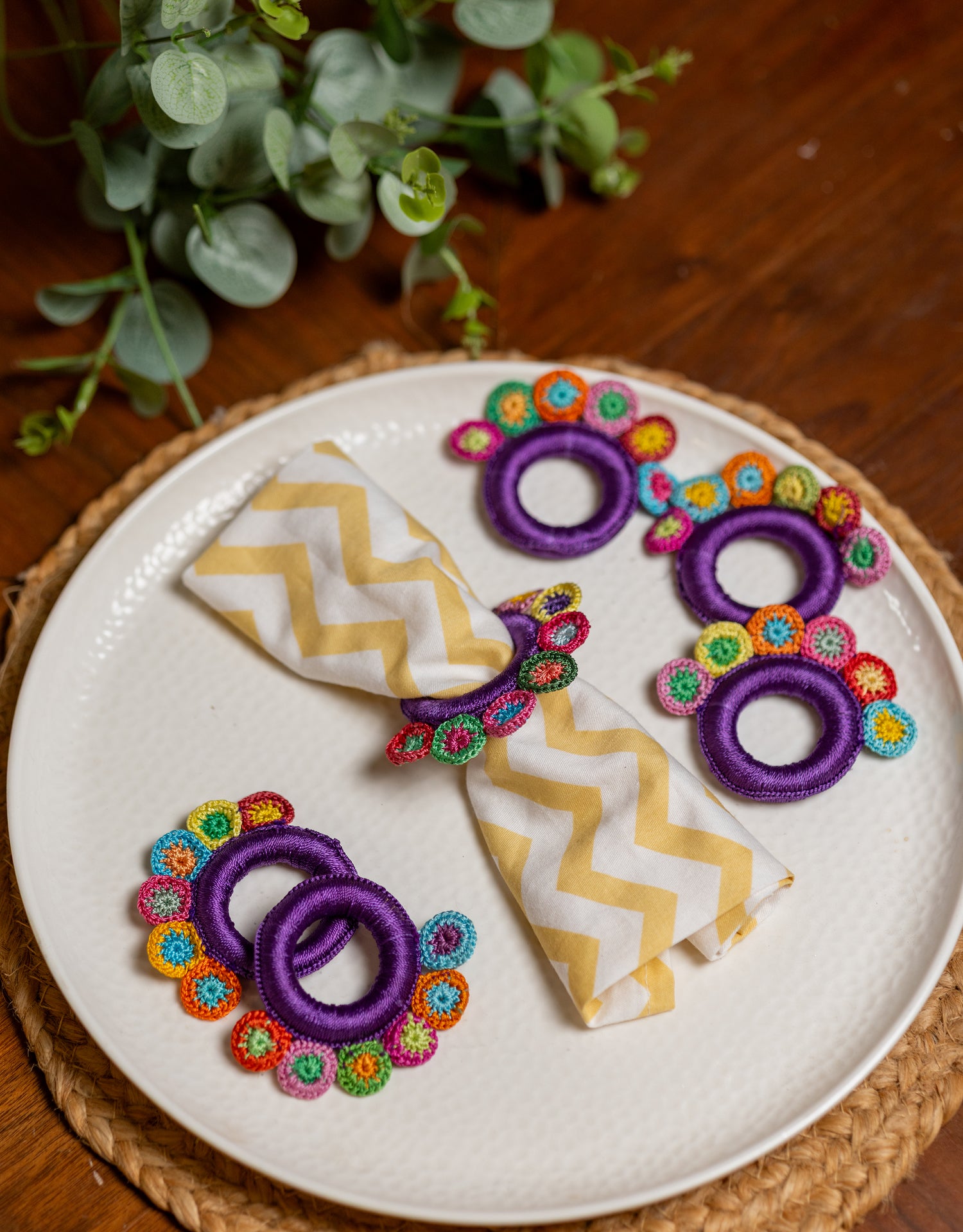 Mau means 'hold'. If your table napkins need some shape, colour or structure, these crochet napkin holders fit the bill. Handmade by our women artisans in Gaya, they are designed to lend a classy touch to even a simple, homely meal. Take them home to your table for a complete and artisanal dining experience.