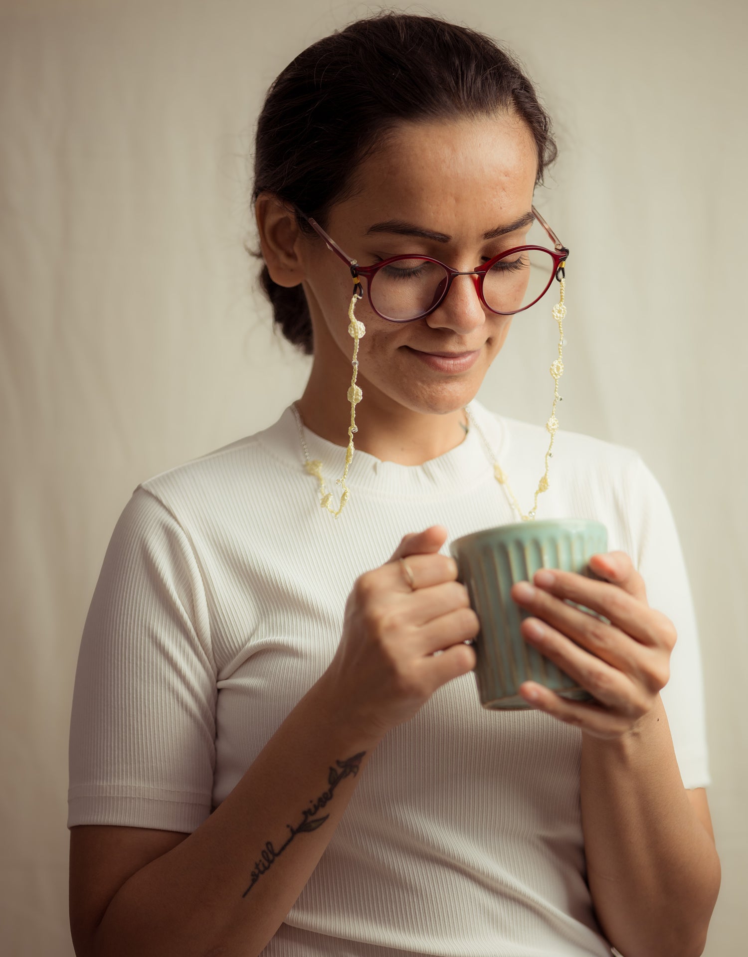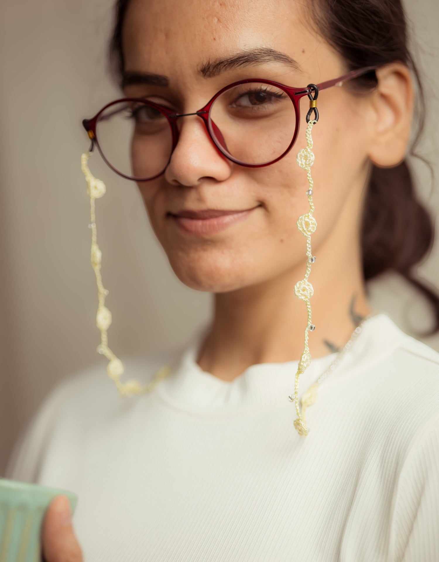 - Material: Spectacle Loop, Glass Beads, Viscose Thread